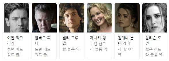 이 영화는 유앤 맥그리거, 알버트 피니, 빌리 크루덥, 제시카 랭, 헬레나 본햄 카터, 앨리슨 로만 등의 인상적인 앙상블 캐스트를 자랑합니다. 배우들의 매력적인 연기로 캐릭터를 생동감 있게 그려내고 이야기의 환상적인 요소에 깊이를 더해줍니다.